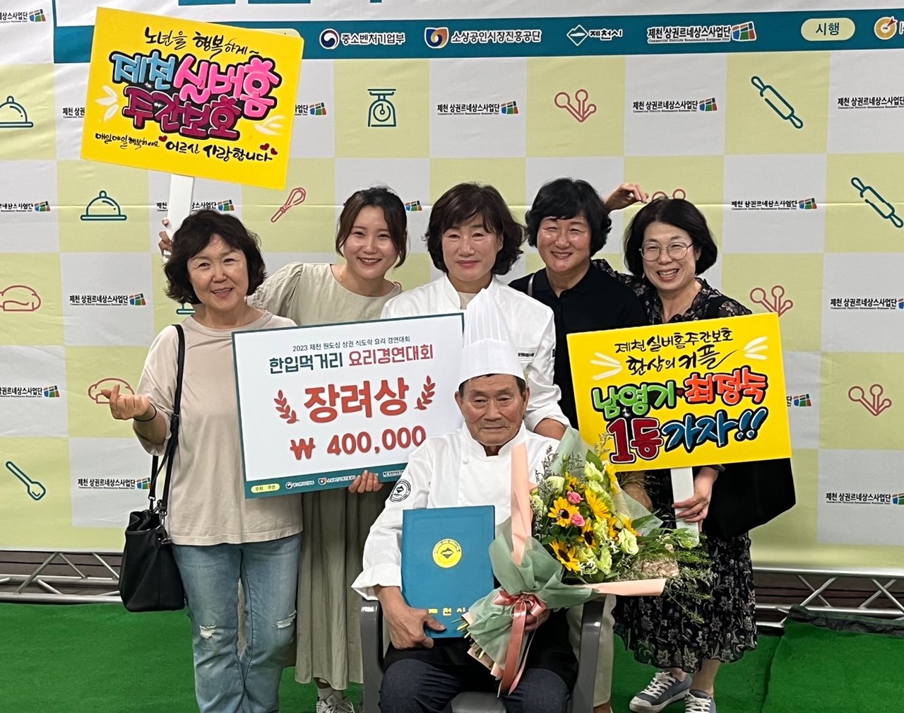 ![]() ▲ 지난 16일 진행된 제천한입먹거리 요리경연대회에서 특별상을 수상한 제천실버홈 주간보호팀 남영기·최정숙씨가 수상 후 주간보호 관계자들과 기념사진을 촬영하고 있다. 이번 요리대회에 제천실버홈 주간보호 이용자 남영기씨(81)와 종사자 최정숙(62)가 한 팀을 이뤄 제천 특산품이 들어간 ‘고향김밥’을 출품해 특별상을 받았다. 남영기씨 팀은 황기와 사과, 곤드레 나물과 한우불고기를 활용해 황토 김밥요리를 만들어 심사위원들부터 좋은 성적과 함께 호평을 받았다. 제천시와 제천상권르네상스사업단이 공동으로 주관한 이번 요리대회는 원도심 상권에서 판매할 수 있는 먹거리 삼품을 발굴·보급하기 위한 것이다. /제천=목성균기자 출처 : 충청일보(https://www.ccdailynews.com) |